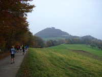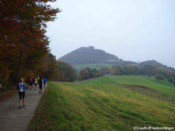 Sozusagen im Nebel liefen beim 10. Schwäbische Alb-Marathon in Schwäbisch Gmünd am 14.10.2000, Manfred Schneider die 25 km Strecke. Dabei galt es 780 Höhenmeter zu überwinden. Nach 2:25:38 konnte er auf dem Hohenrechberg durchs Ziel laufen. Belegte den 6. Platz in M50 und wurde 94 in dem 216 Teilnehmer starken Feld. Gerlinde Hochstein lief weiter und höher, nämlich 50 km und 1100 Höhenmeter. Mit Bravour belegte sie den 19. Platz unter allen Frauen und wurde 2 in ihrer Altersklasse W45 nach 4:58:07 Stunden. Auf der gleichen Distanz belegte Manfred Ahrendts den 198 Platz in 4:54:30 und in M50 Rang 16. Seine gute Form konnte Dieter Mathes wieder unter Beweis stellen, der nach 4:46:50 das Ziel erreichte und damit 164 im Gesamtfeld wurde. Für ihn bedeutet dies Rang 44 in seiner Altersklasse M40.